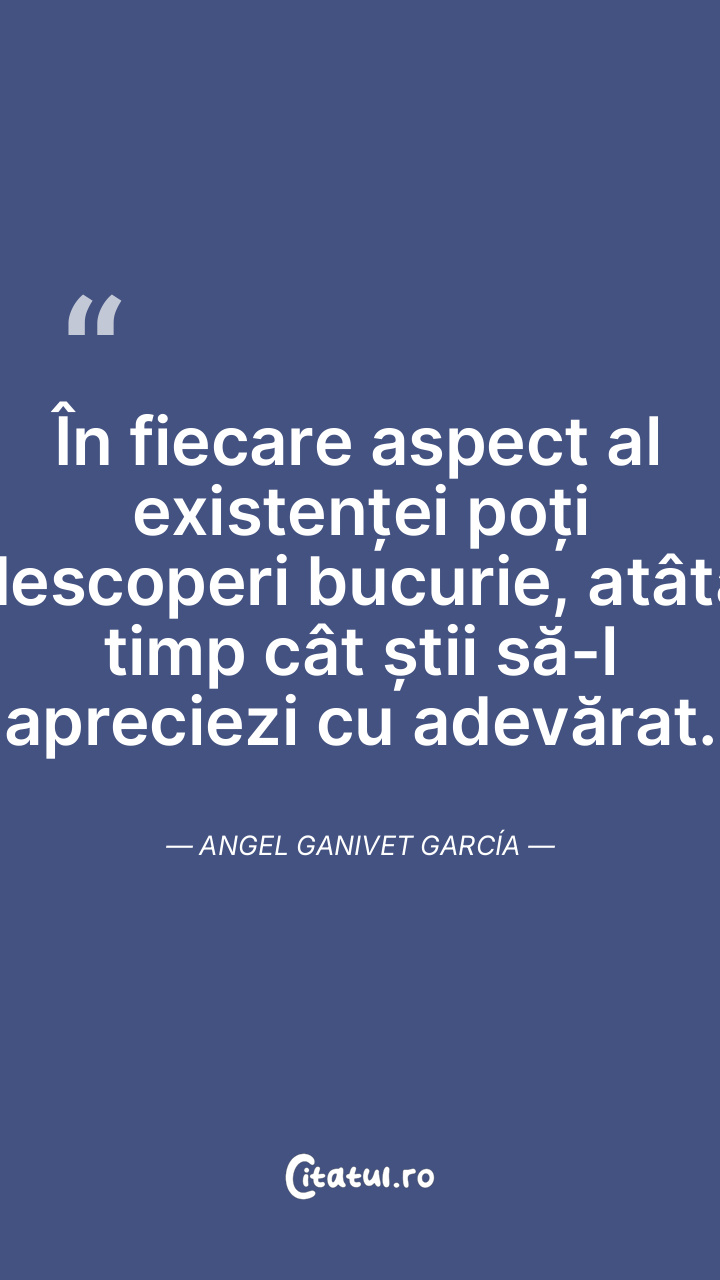 În fiecare aspect al existenței poți descoperi bucurie, atâta timp cât știi să-l apreciezi cu adevărat. Angel Ganivet García