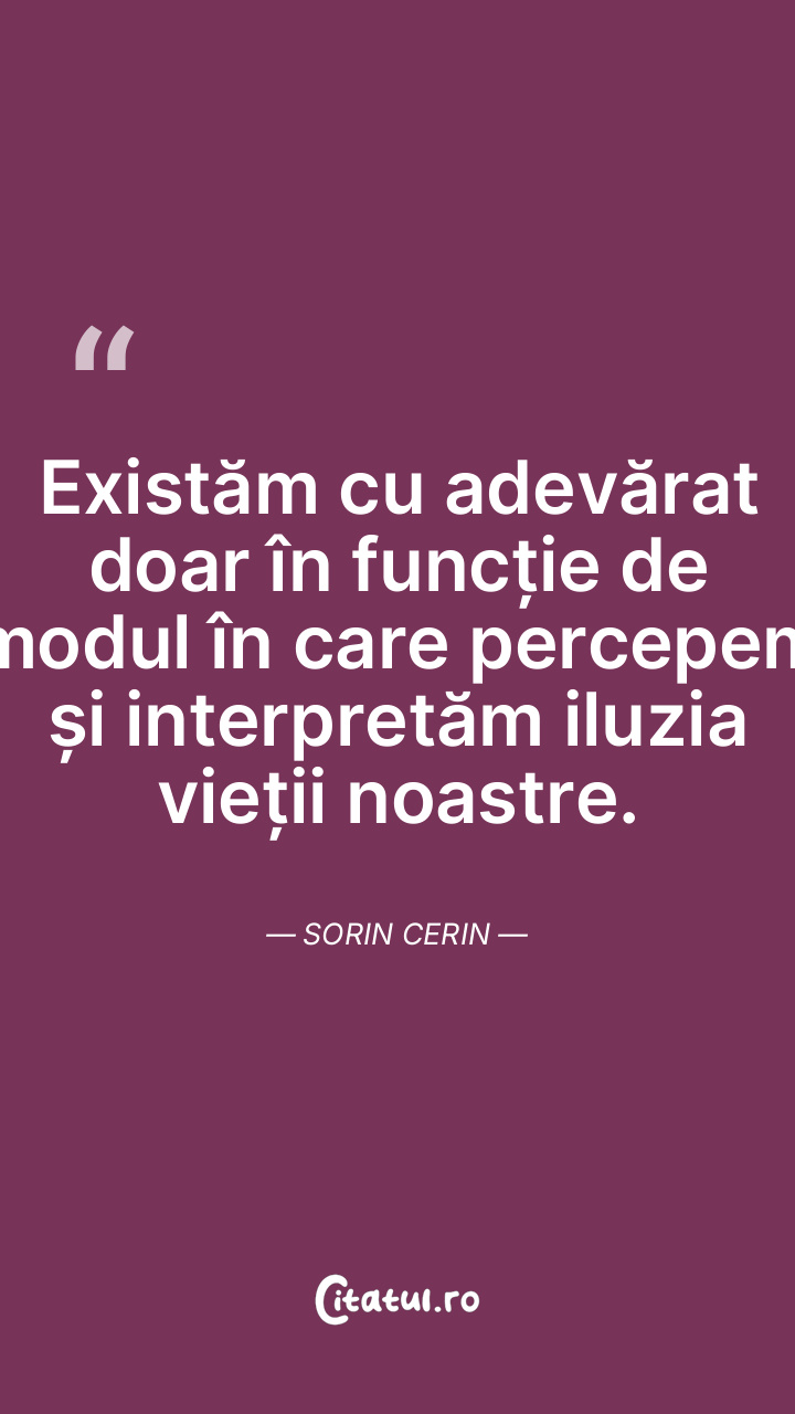 Existăm cu adevărat doar în funcție de modul în care percepem și interpretăm iluzia vieții noastre. Sorin Cerin