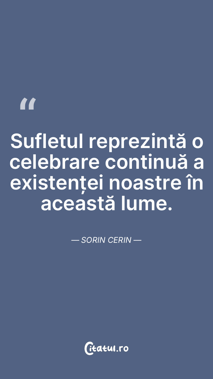 Sufletul reprezintă o celebrare continuă a existenței noastre în această lume. Sorin Cerin