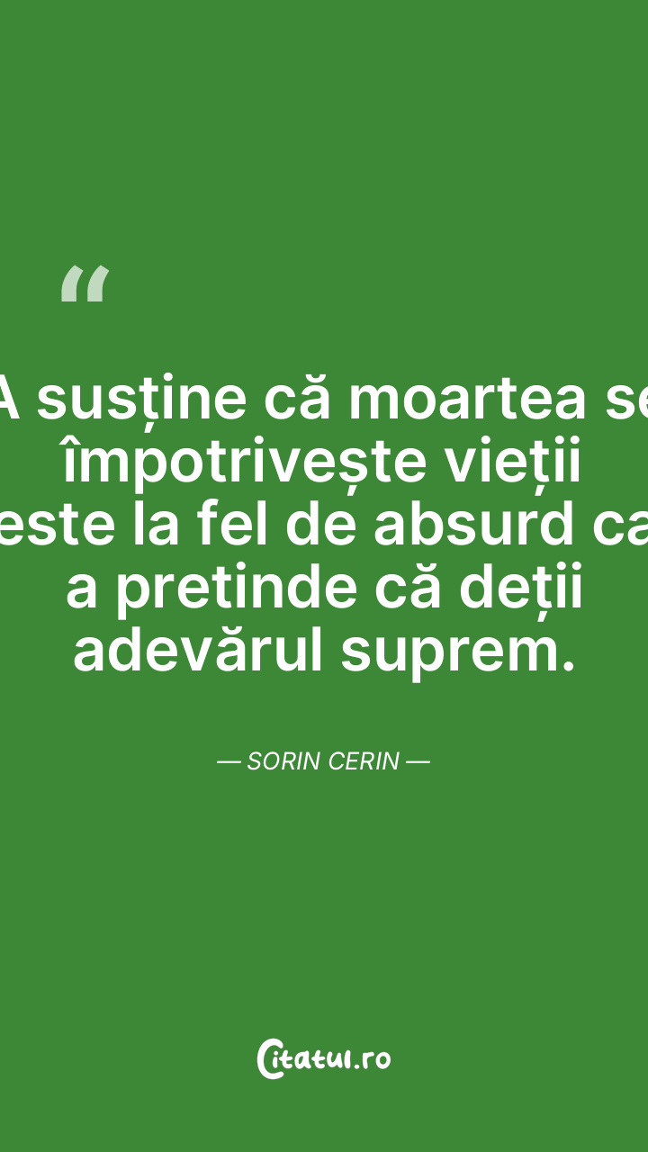 A susține că moartea se împotrivește vieții este la fel de absurd ca a pretinde că deții adevărul suprem. Sorin Cerin