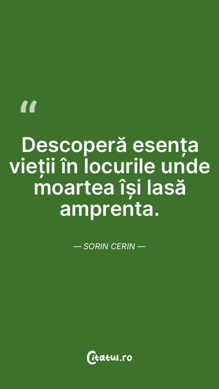 Descoperă esența vieții în locurile unde moartea își lasă amprenta. Sorin Cerin