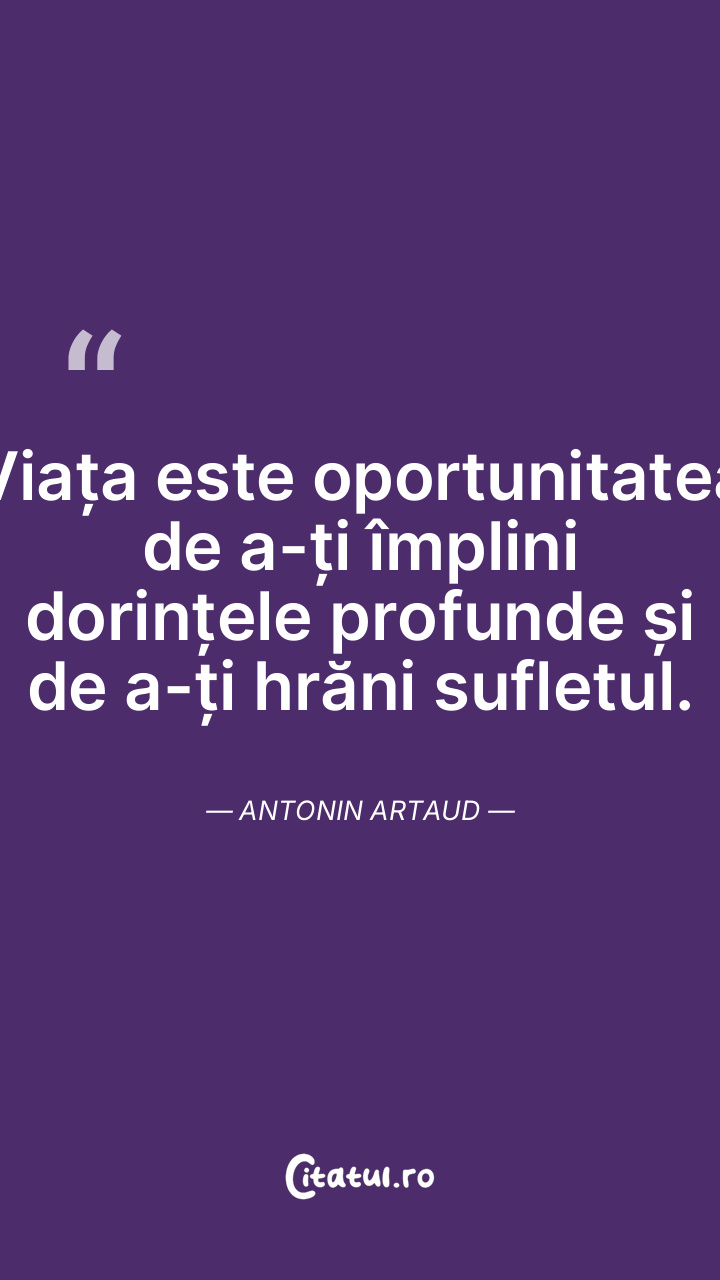 Viața este oportunitatea de a-ți împlini dorințele profunde și de a-ți hrăni sufletul. Antonin Artaud