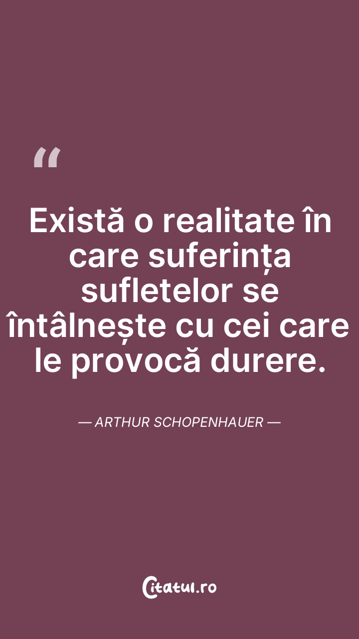 Există o realitate în care suferința sufletelor se întâlnește cu cei care le provocă durere. Arthur Schopenhauer