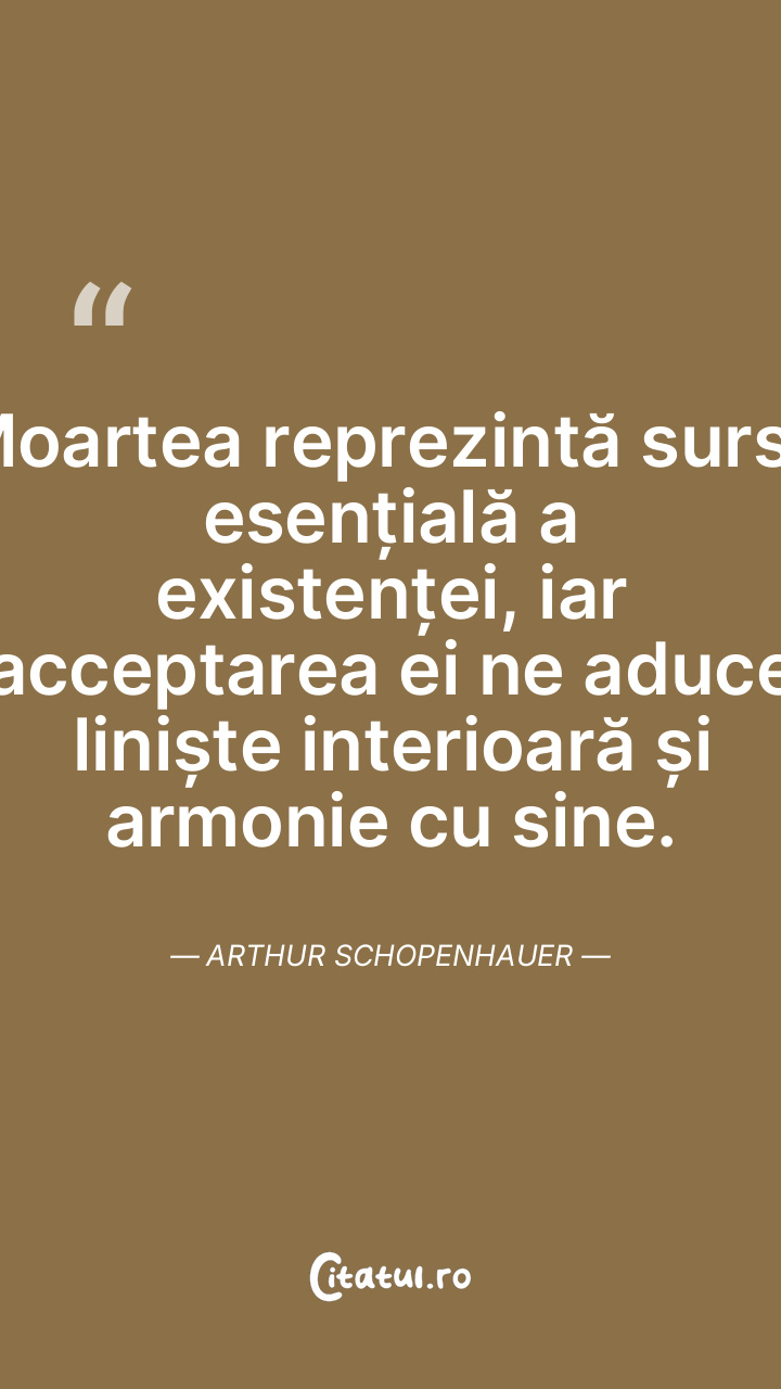 Moartea reprezintă sursa esențială a existenței, iar acceptarea ei ne aduce liniște interioară și armonie cu sine. Arthur Schopenhauer