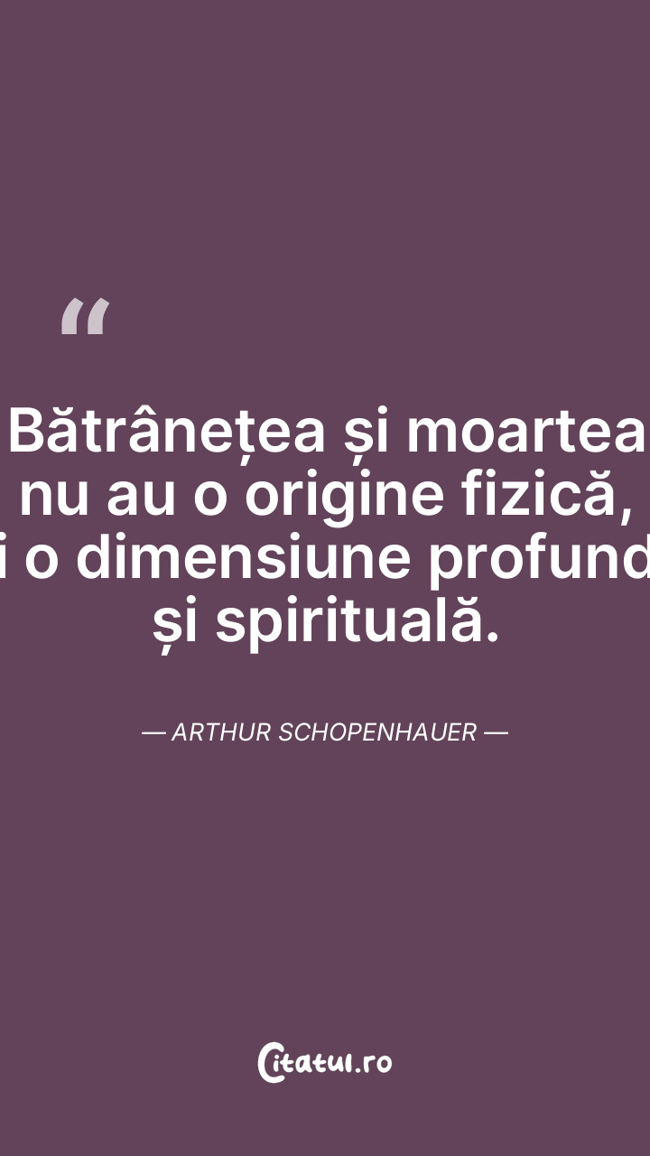 Bătrânețea și moartea nu au o origine fizică, ci o dimensiune profundă și spirituală. Arthur Schopenhauer