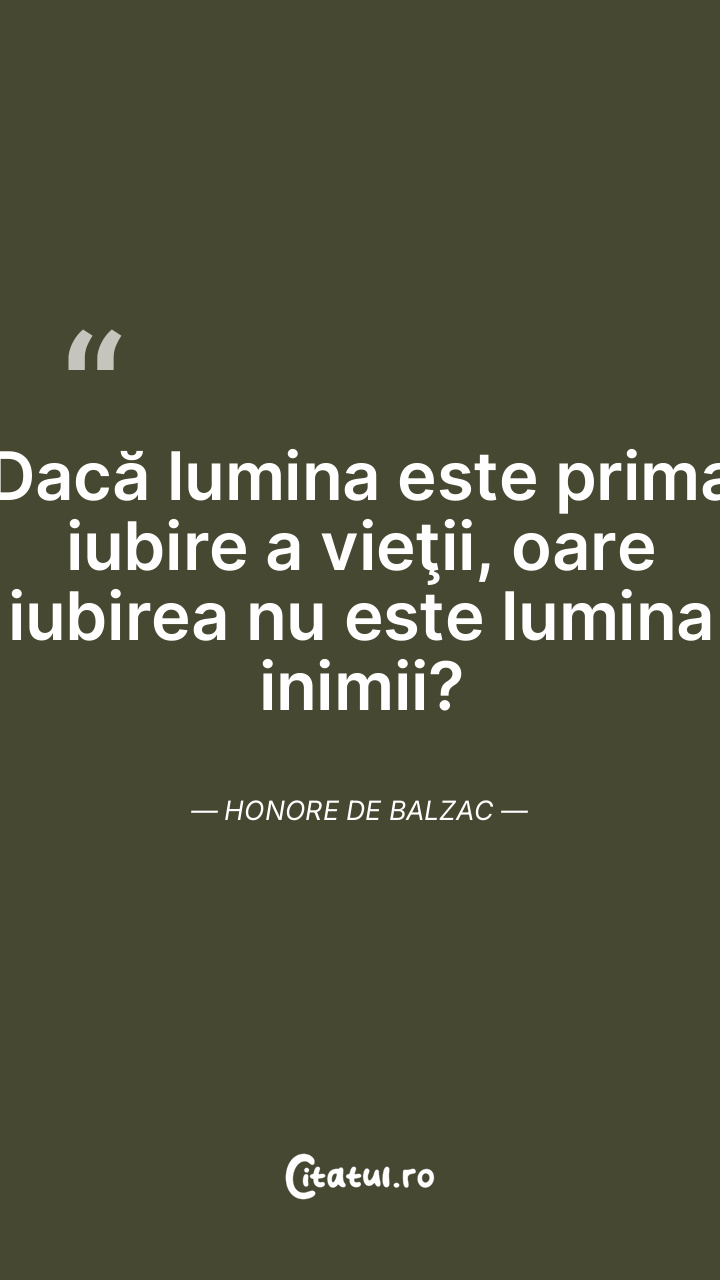 Dacă lumina este prima iubire a vieţii, oare iubirea nu este lumina inimii? Honore de Balzac