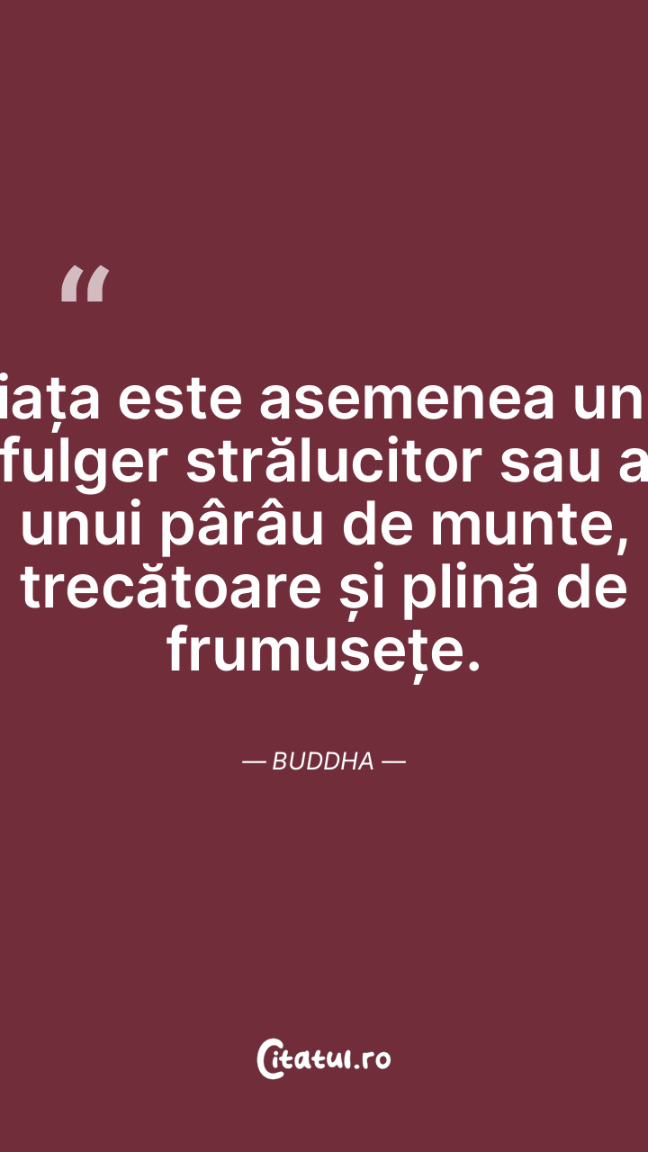 Viața este asemenea unui fulger strălucitor sau a unui pârâu de munte, trecătoare și plină de frumusețe. Buddha
