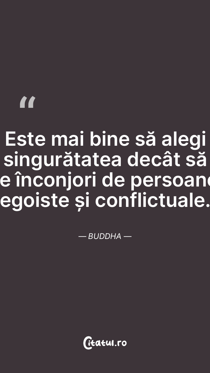 Este mai bine să alegi singurătatea decât să te înconjori de persoane egoiste și conflictuale. Buddha