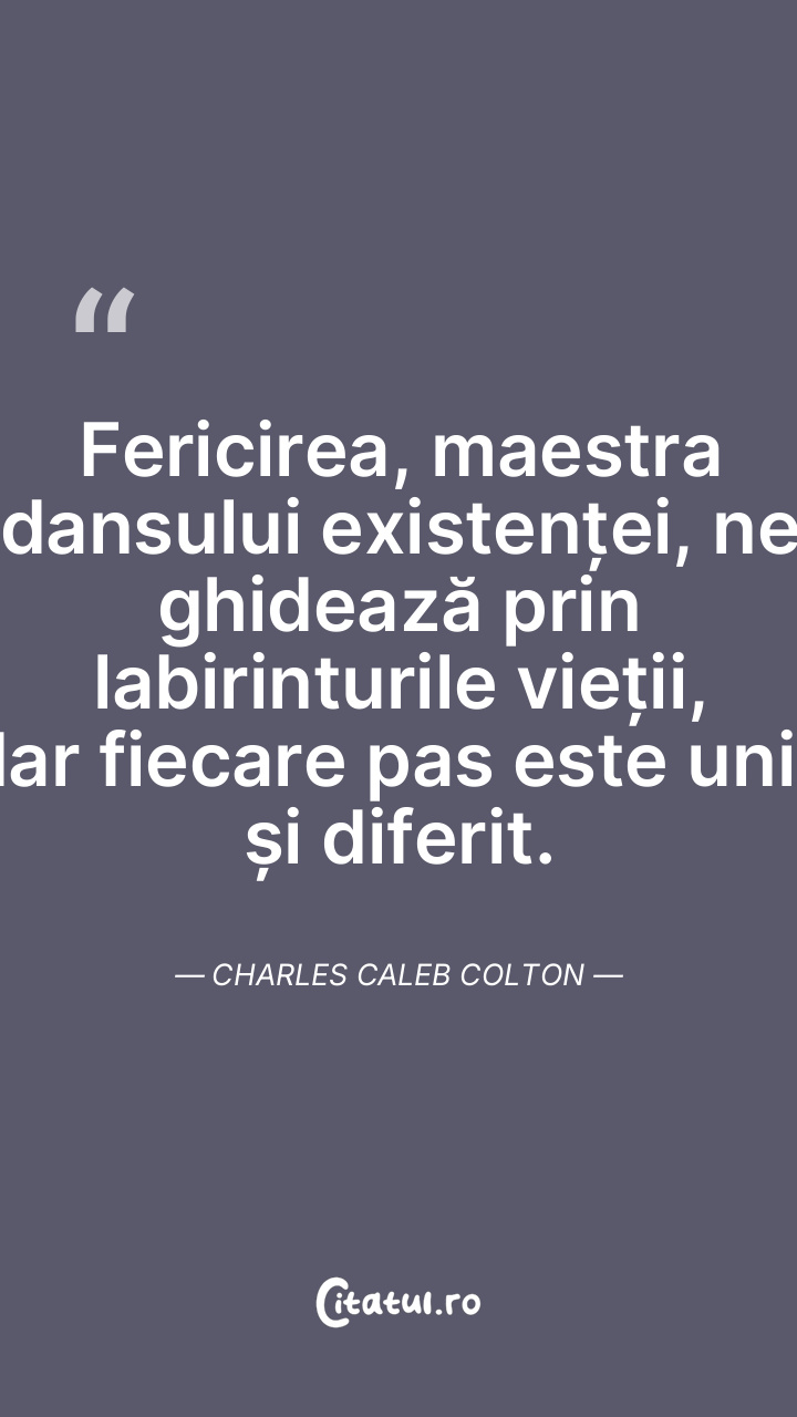 Fericirea, maestra dansului existenței, ne ghidează prin labirinturile vieții, dar fiecare pas este unic și diferit. Charles Caleb Colton