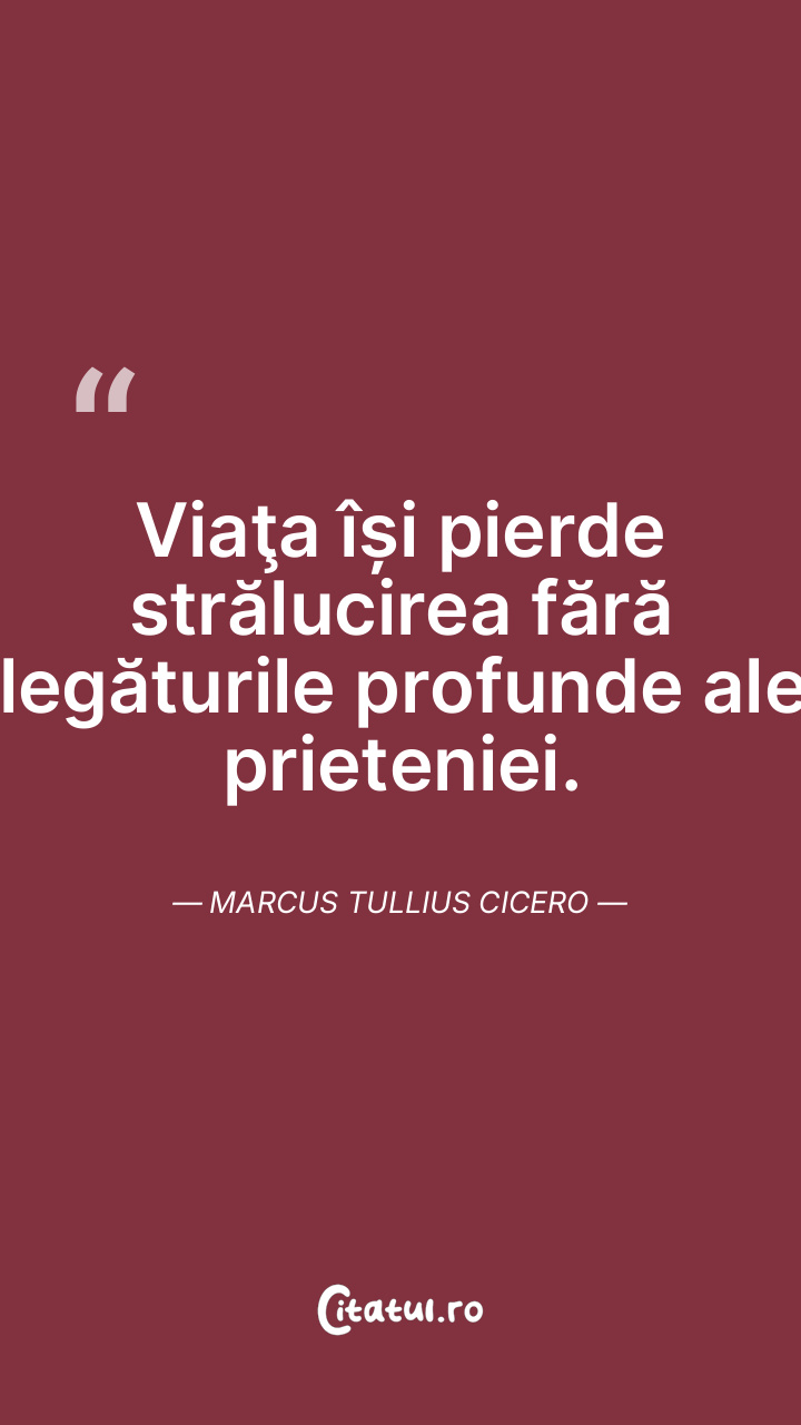 Viaţa își pierde strălucirea fără legăturile profunde ale prieteniei. Marcus Tullius Cicero