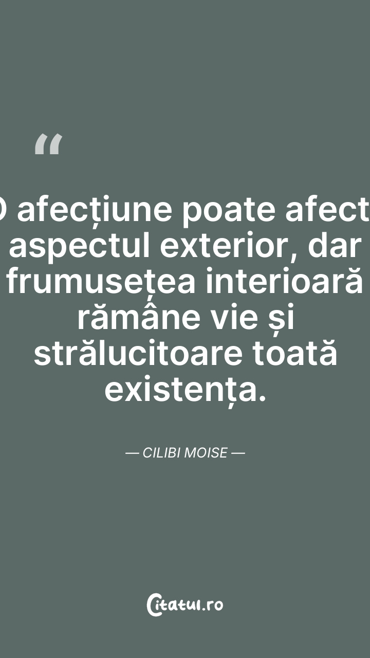 O afecțiune poate afecta aspectul exterior, dar frumusețea interioară rămâne vie și strălucitoare toată existența. Cilibi Moise