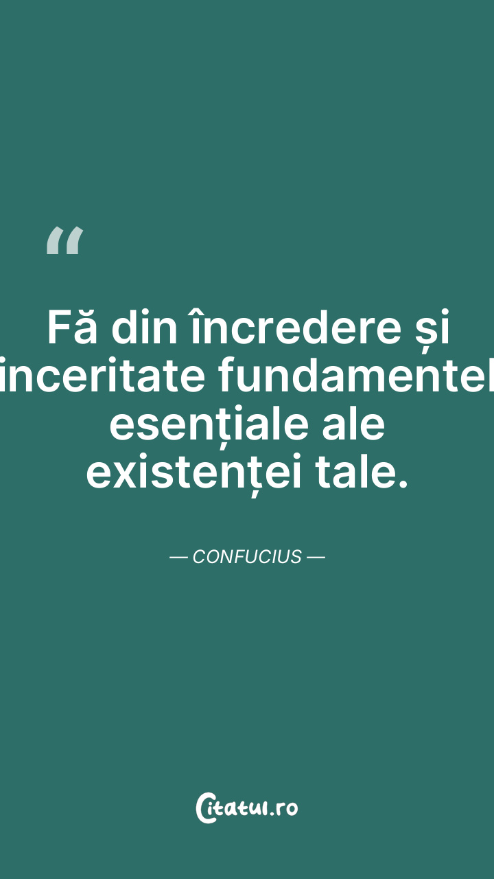 Fă din încredere și sinceritate fundamentele esențiale ale existenței tale. Confucius