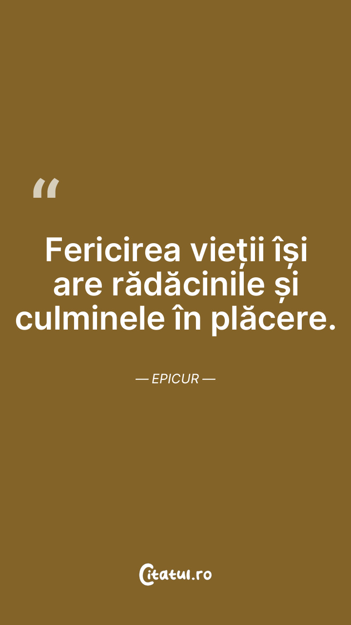 Fericirea vieții își are rădăcinile și culminele în plăcere. Epicur