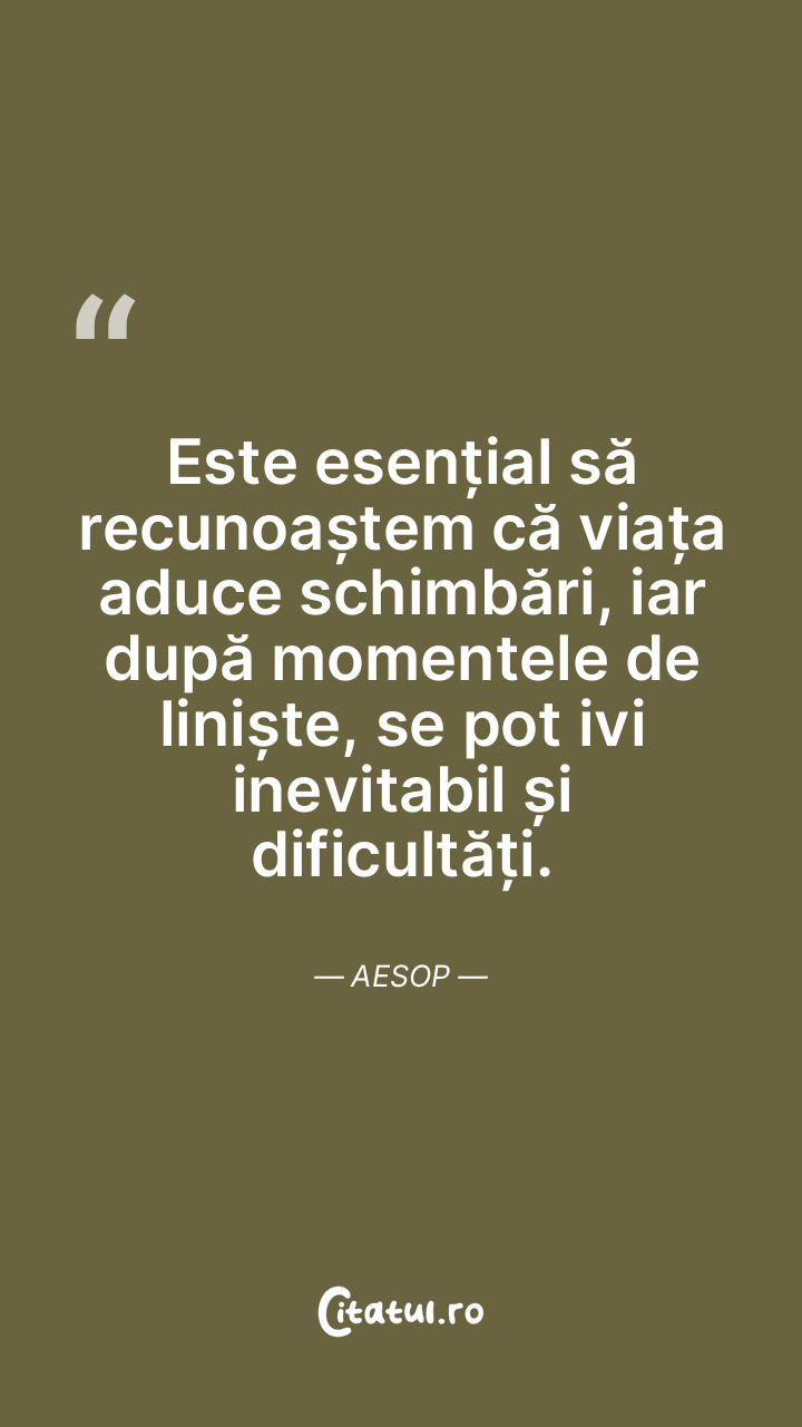Este esențial să recunoaștem că viața aduce schimbări, iar după momentele de liniște, se pot ivi inevitabil și dificultăți. Aesop