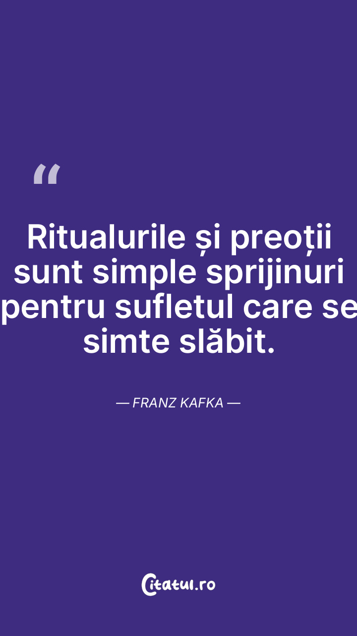 Ritualurile și preoții sunt simple sprijinuri pentru sufletul care se simte slăbit. Franz Kafka