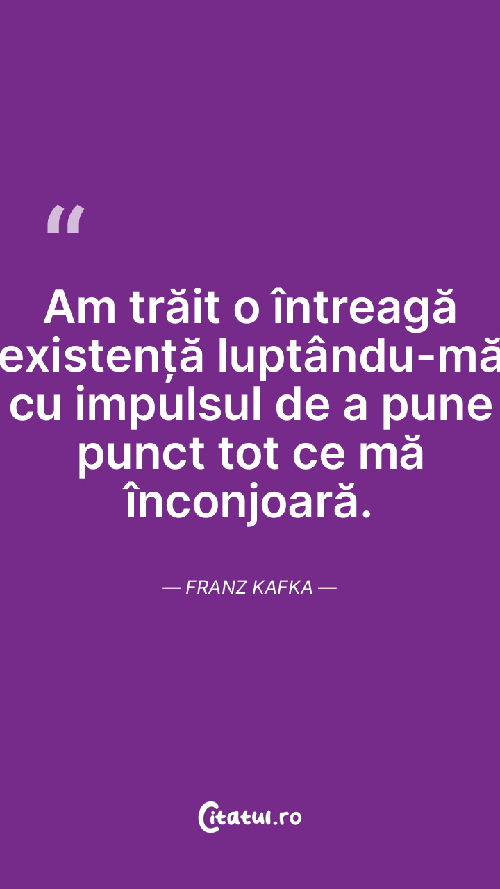 Am trăit o întreagă existență luptându-mă cu impulsul de a pune punct tot ce mă înconjoară. Franz Kafka