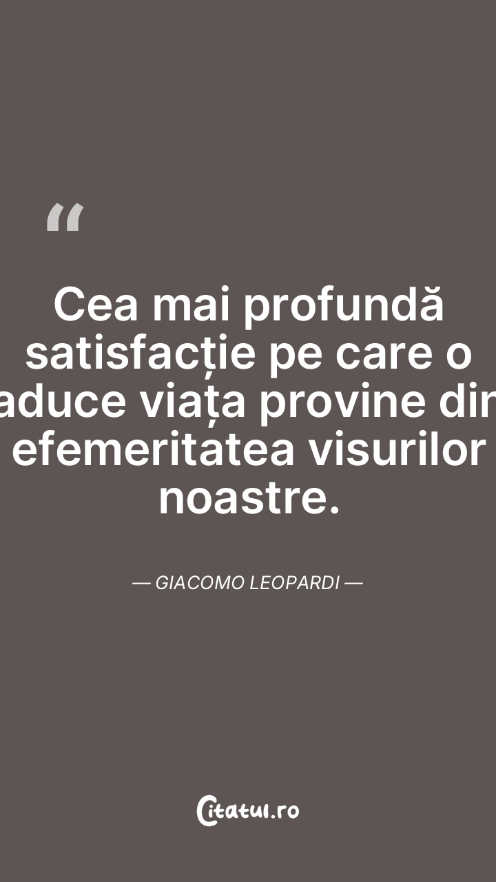 Cea mai profundă satisfacție pe care o aduce viața provine din efemeritatea visurilor noastre. Giacomo Leopardi