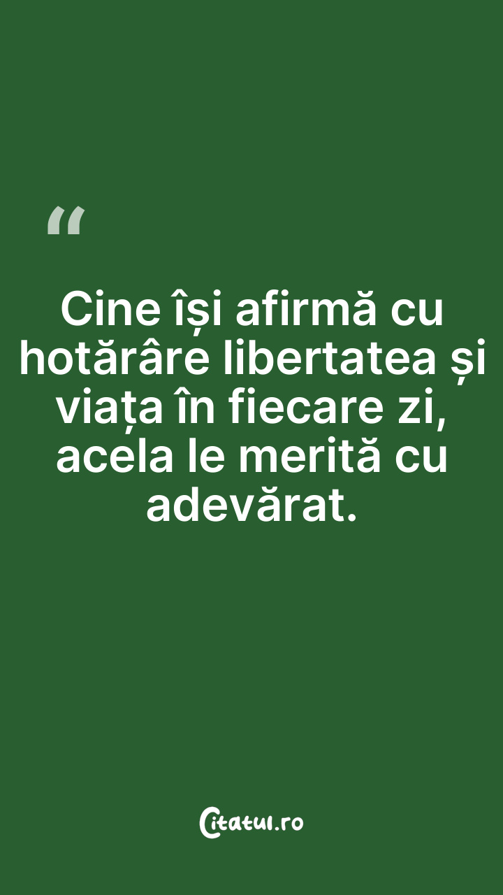 Cine își afirmă cu hotărâre libertatea și viața în fiecare zi, acela le merită cu adevărat.