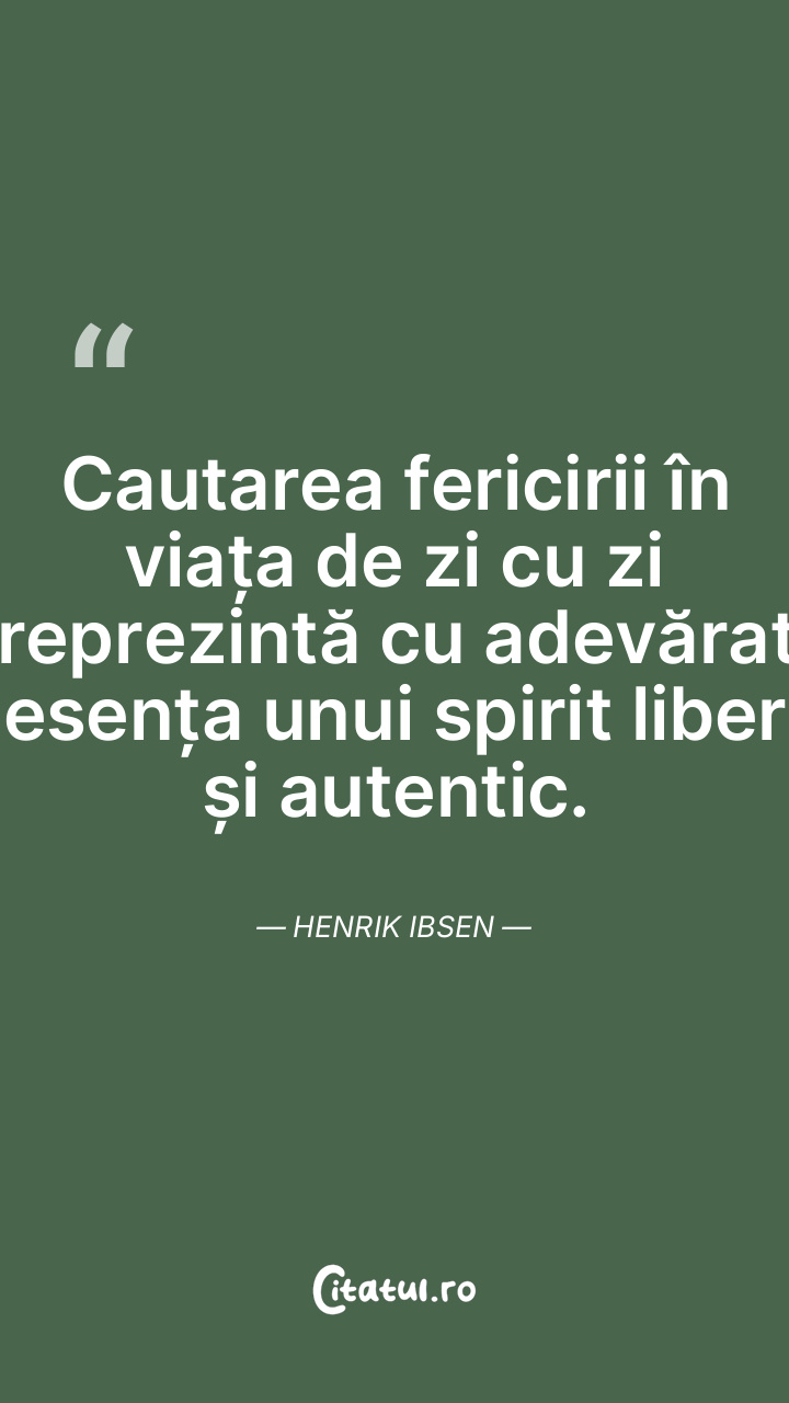 Cautarea fericirii în viața de zi cu zi reprezintă cu adevărat esența unui spirit liber și autentic. Henrik Ibsen