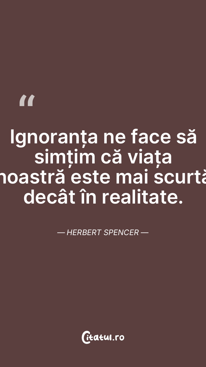 Ignoranța ne face să simțim că viața noastră este mai scurtă decât în realitate. Herbert Spencer