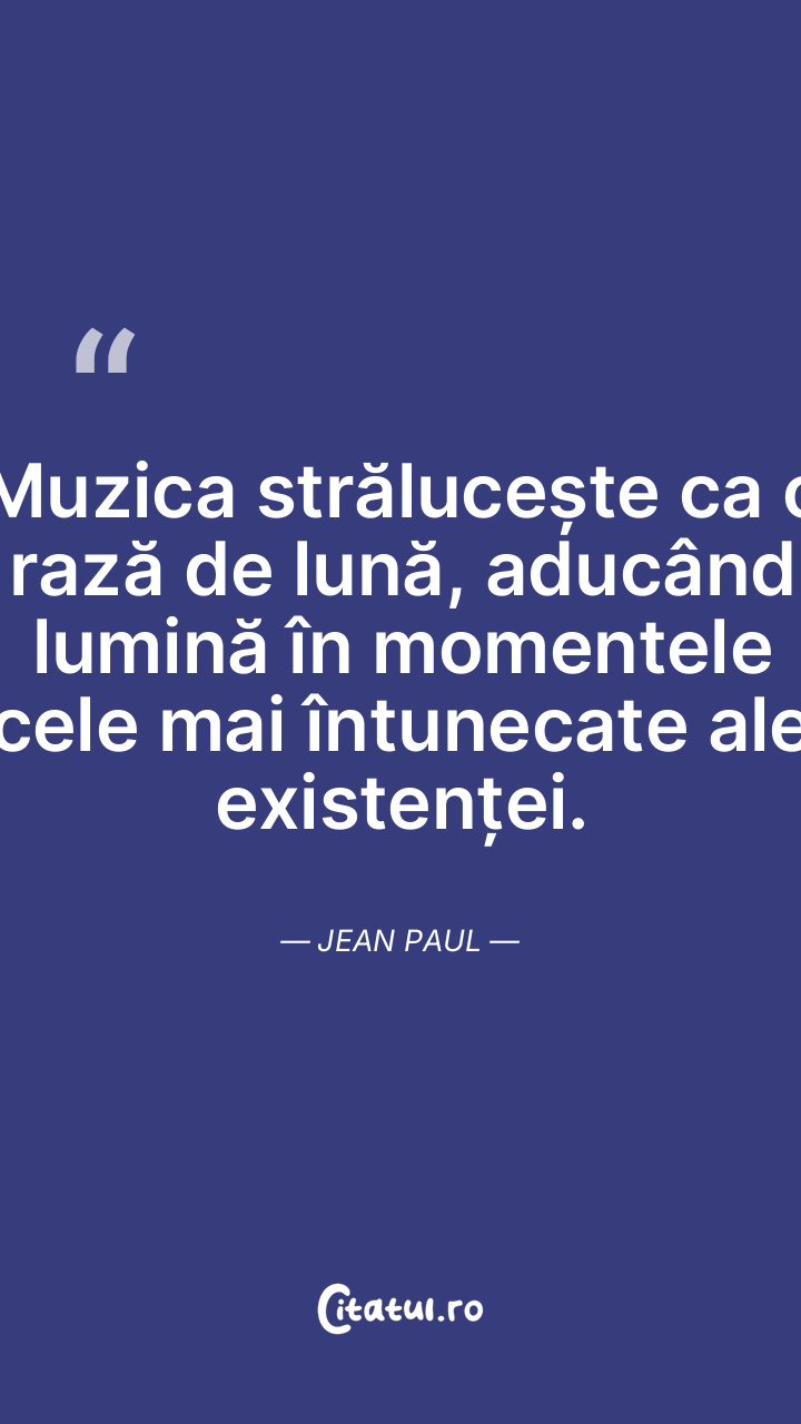 Muzica strălucește ca o rază de lună, aducând lumină în momentele cele mai întunecate ale existenței. Jean Paul