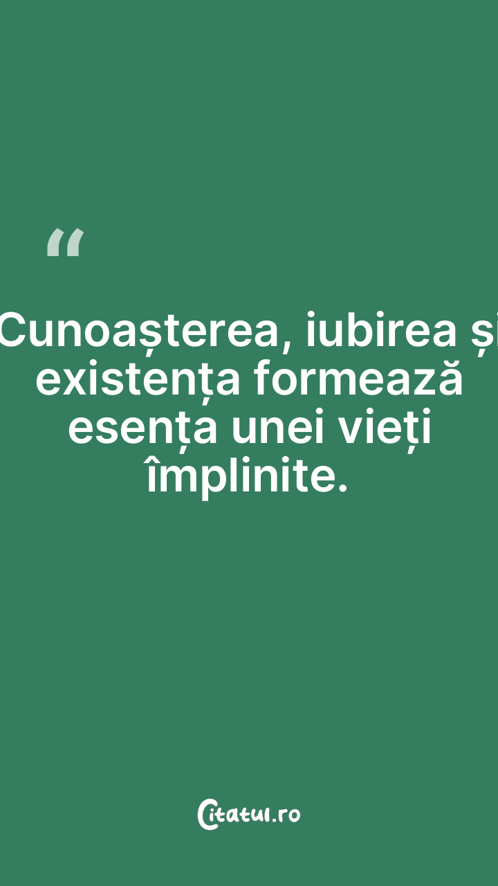Cunoașterea, iubirea și existența formează esența unei vieți împlinite.