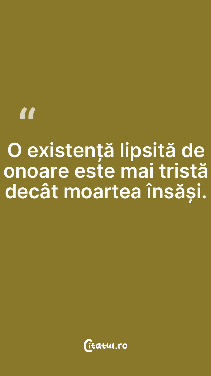 O existență lipsită de onoare este mai tristă decât moartea însăși.
