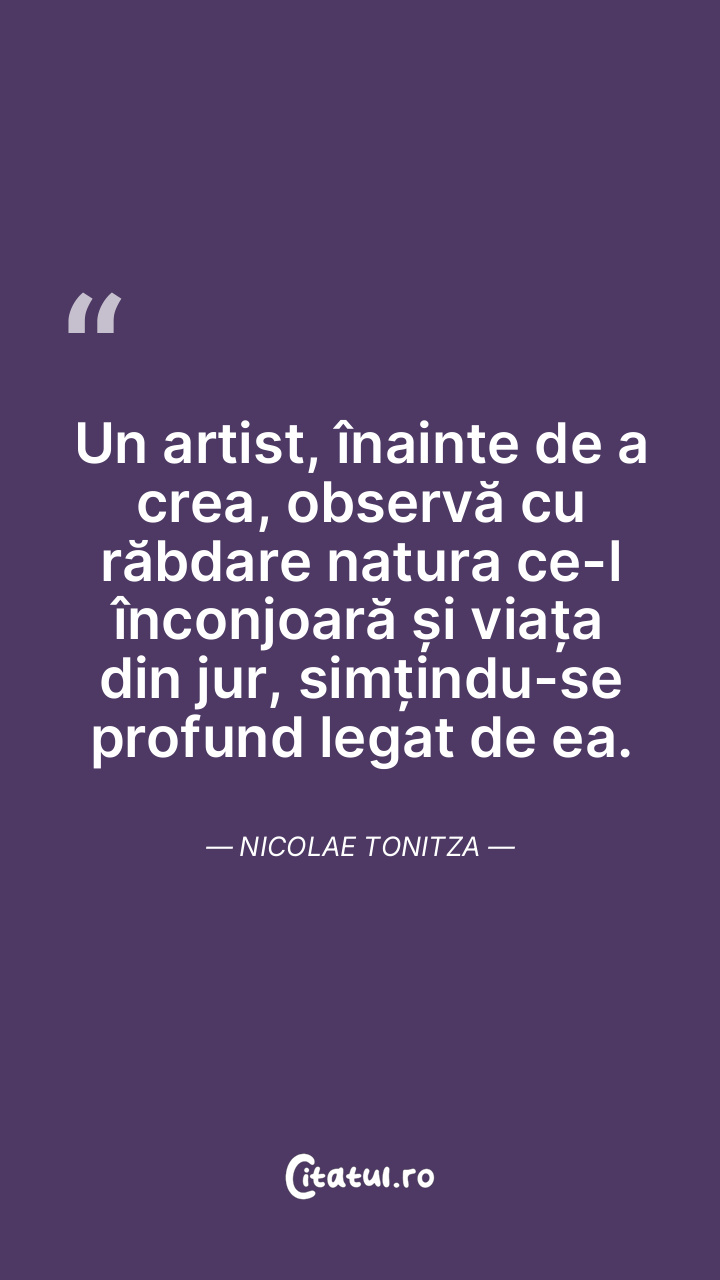 Un artist, înainte de a crea, observă cu răbdare natura ce-l înconjoară și viața din jur, simțindu-se profund legat de ea. Nicolae Tonitza