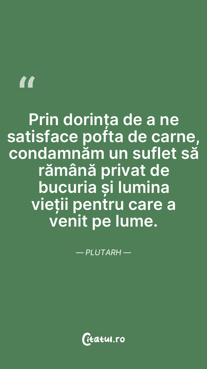 Prin dorința de a ne satisface pofta de carne, condamnăm un suflet să rămână privat de bucuria și lumina vieții pentru care a venit pe lume. Plutarh