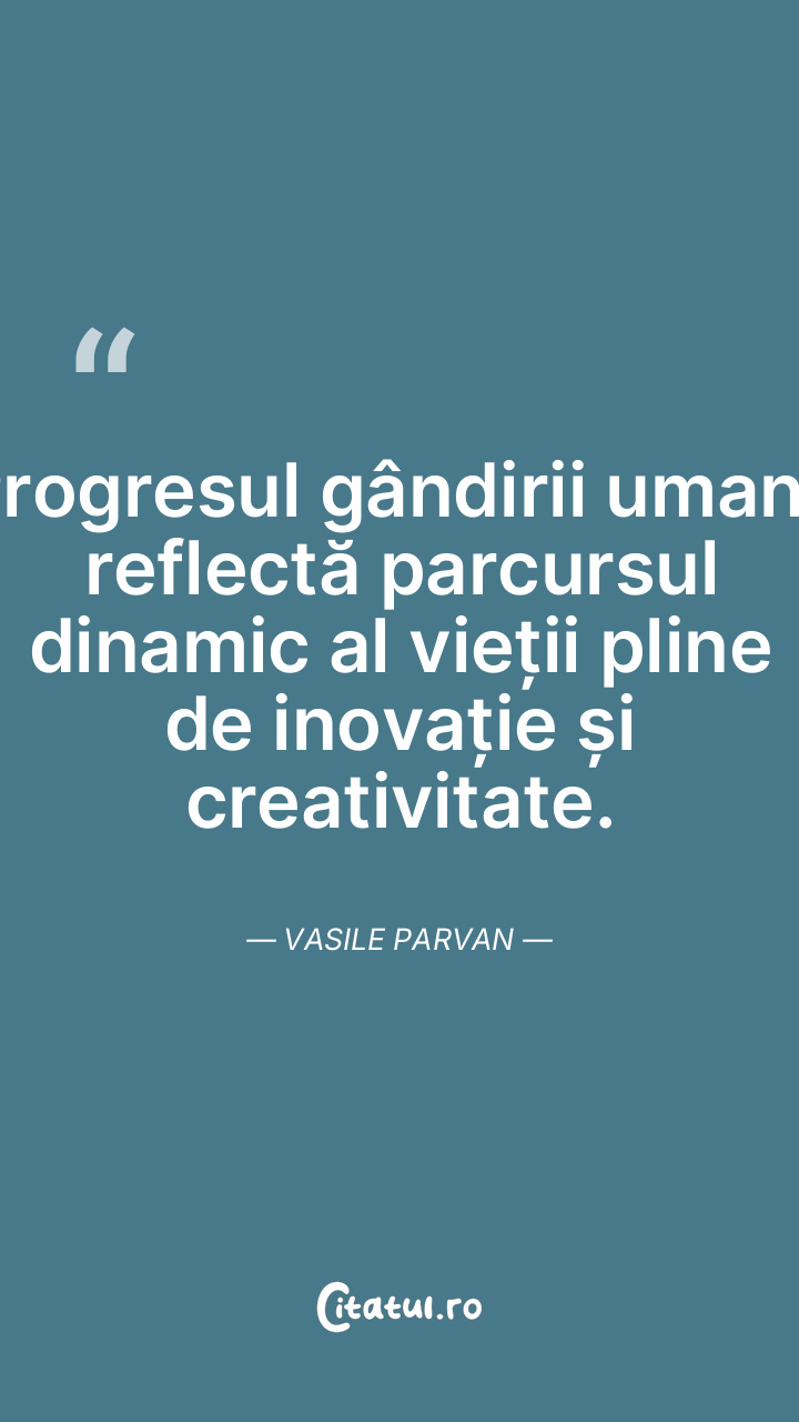 Progresul gândirii umane reflectă parcursul dinamic al vieții pline de inovație și creativitate. Vasile Parvan