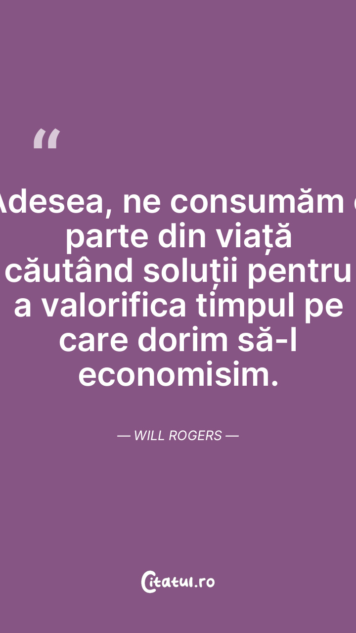 Adesea, ne consumăm o parte din viață căutând soluții pentru a valorifica timpul pe care dorim să-l economisim. Will Rogers