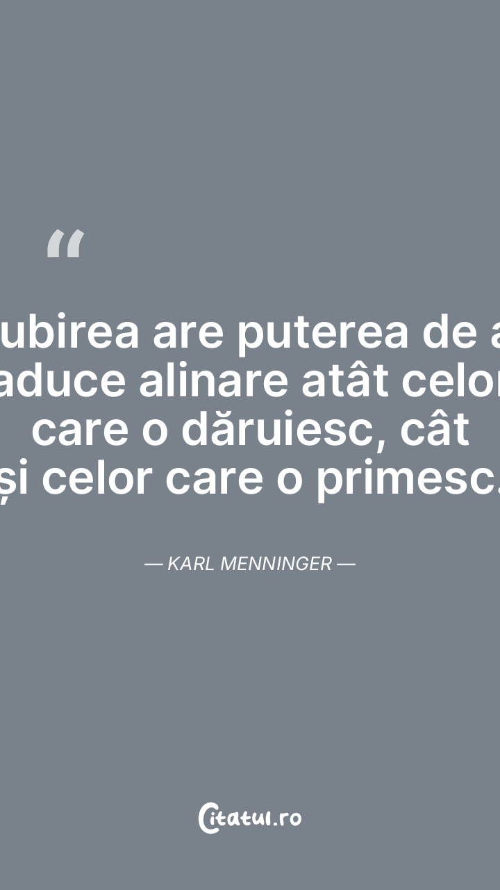 Iubirea are puterea de a aduce alinare atât celor care o dăruiesc, cât și celor care o primesc. Karl Menninger