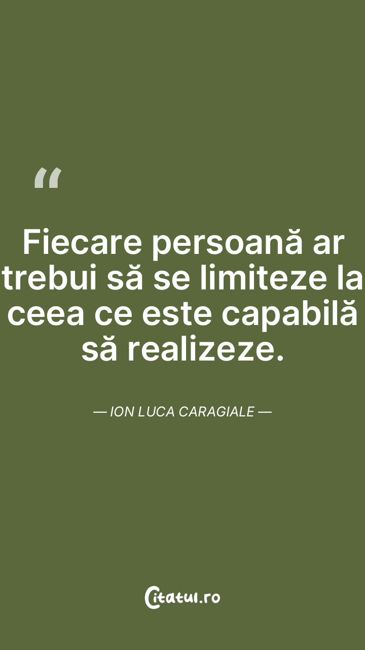 Fiecare persoană ar trebui să se limiteze la ceea ce este capabilă să realizeze. Ion Luca Caragiale