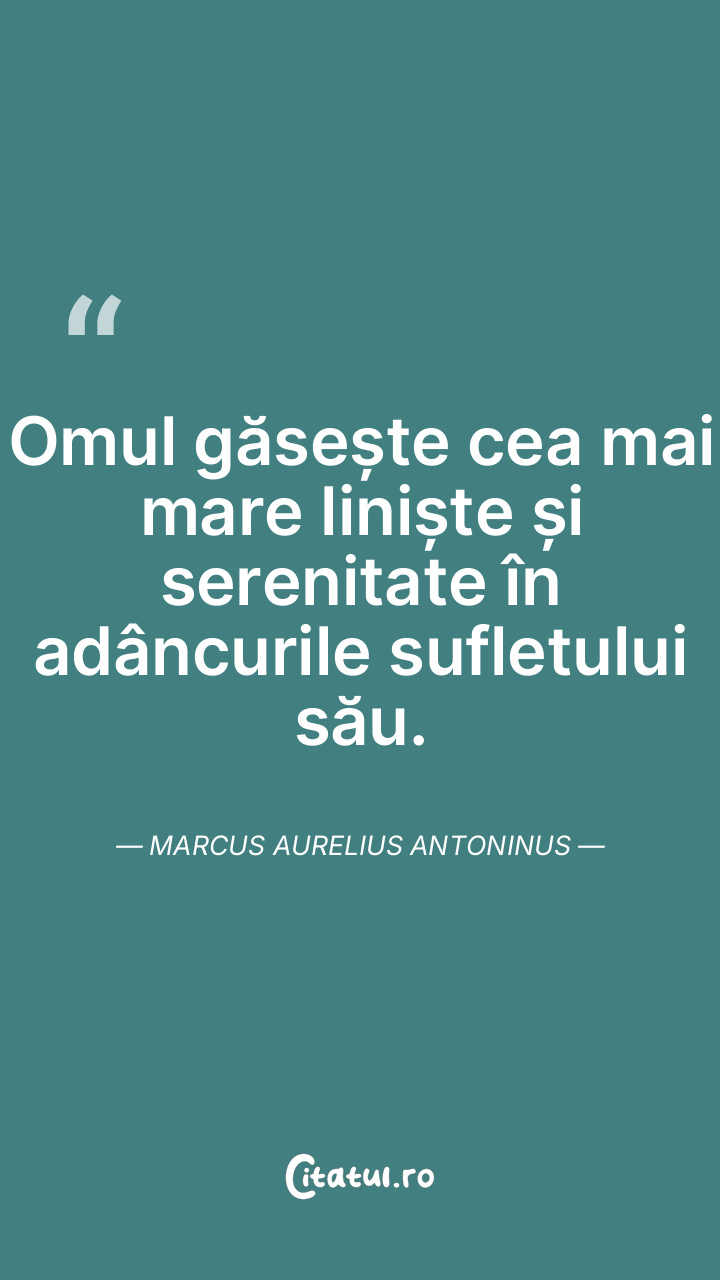 Omul găsește cea mai mare liniște și serenitate în adâncurile sufletului său. Marcus Aurelius Antoninus