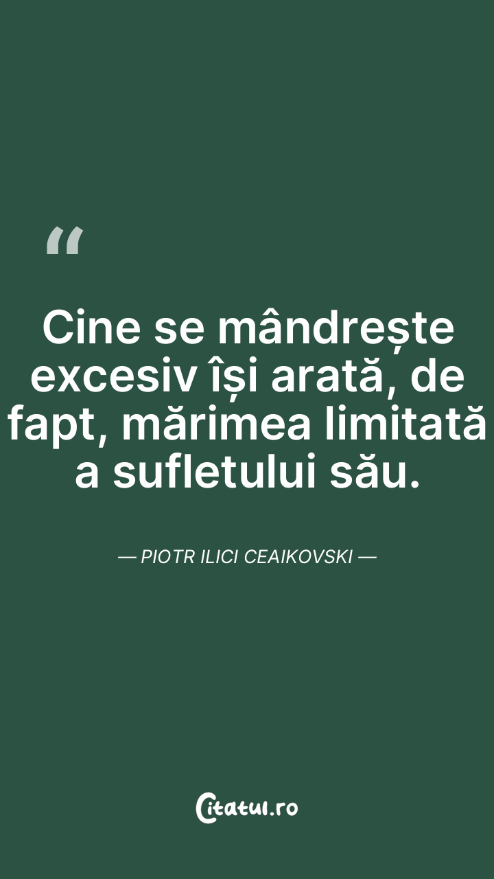 Cine se mândrește excesiv își arată, de fapt, mărimea limitată a sufletului său. Piotr Ilici Ceaikovski