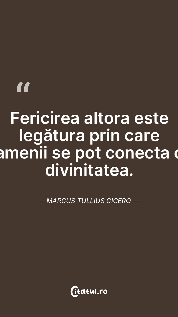 Fericirea altora este legătura prin care oamenii se pot conecta cu divinitatea. Marcus Tullius Cicero