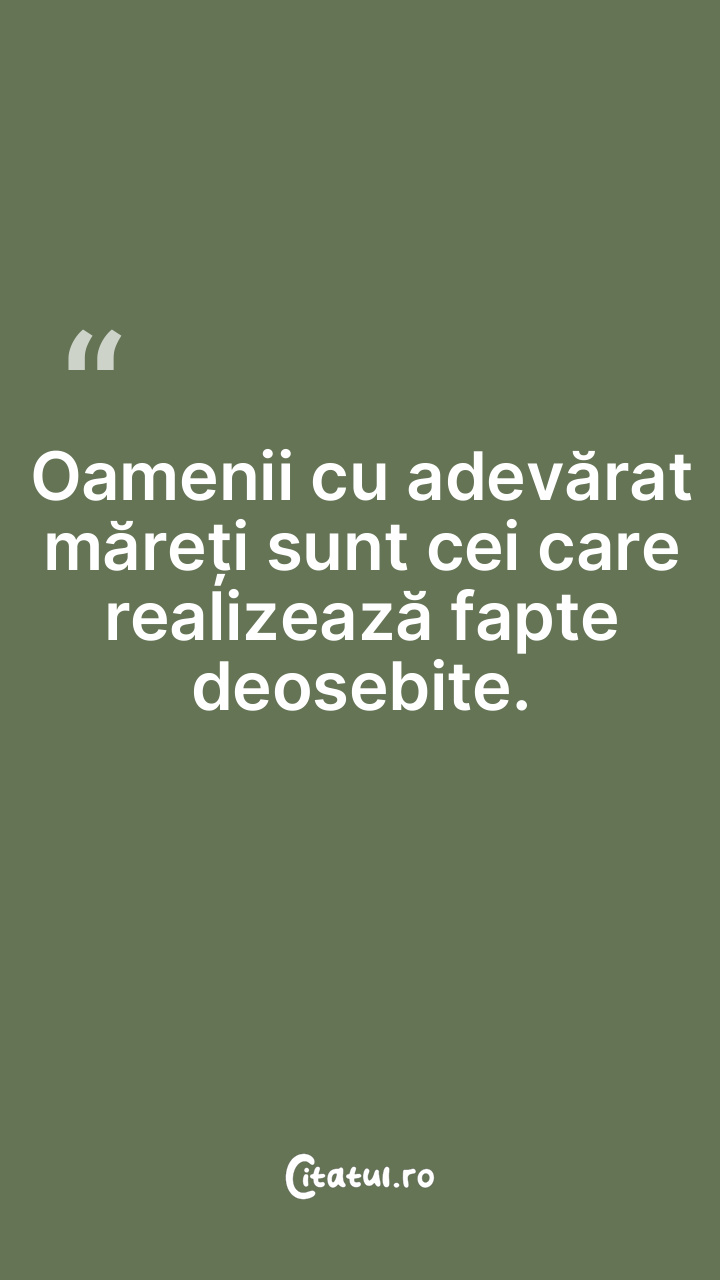 Oamenii cu adevărat măreți sunt cei care realizează fapte deosebite.
