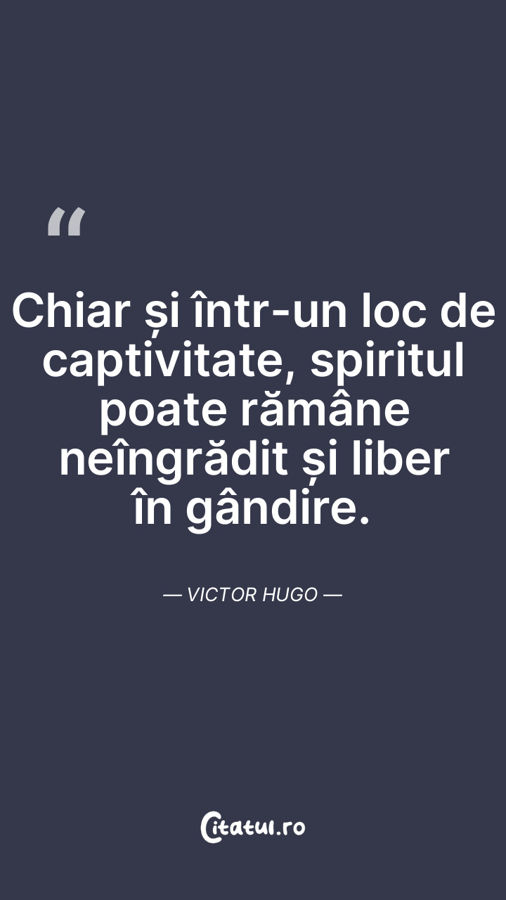 Chiar și într-un loc de captivitate, spiritul poate rămâne neîngrădit și liber în gândire. Victor Hugo