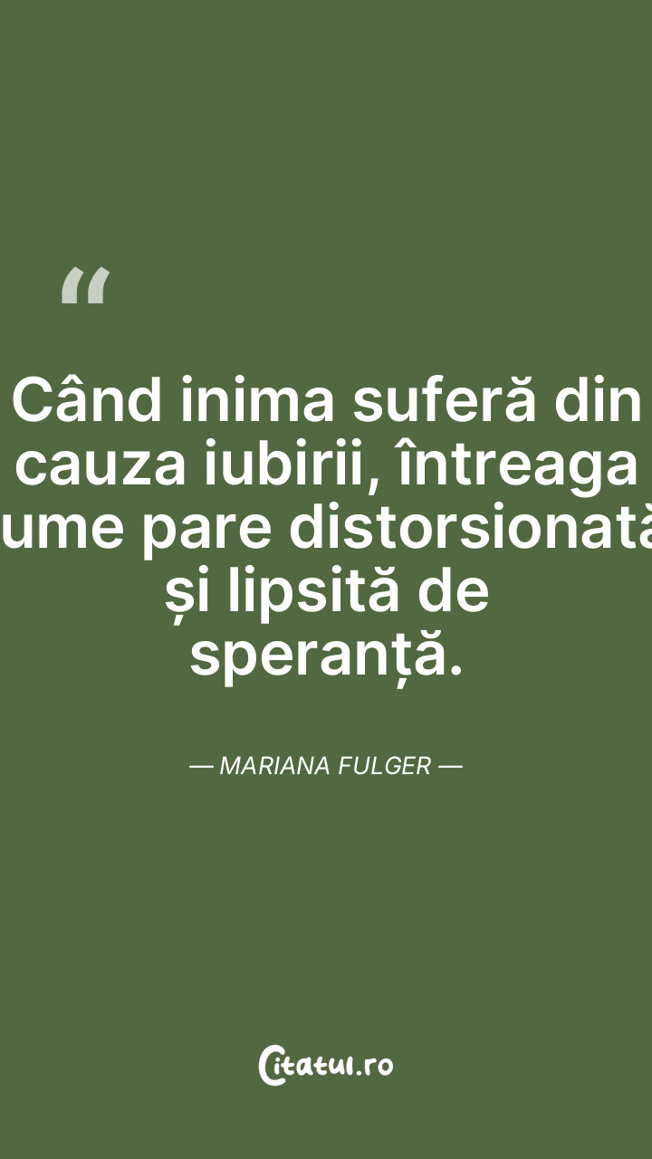 Când inima suferă din cauza iubirii, întreaga lume pare distorsionată și lipsită de speranță. Mariana Fulger