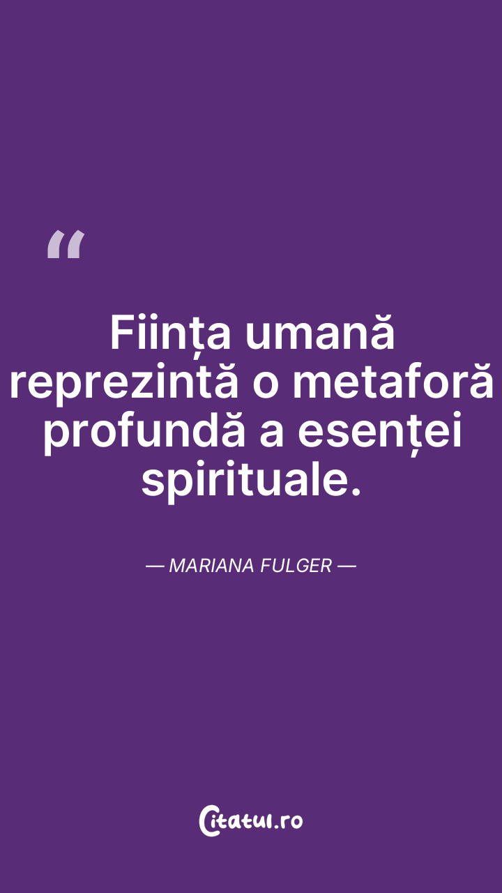 Ființa umană reprezintă o metaforă profundă a esenței spirituale. Mariana Fulger