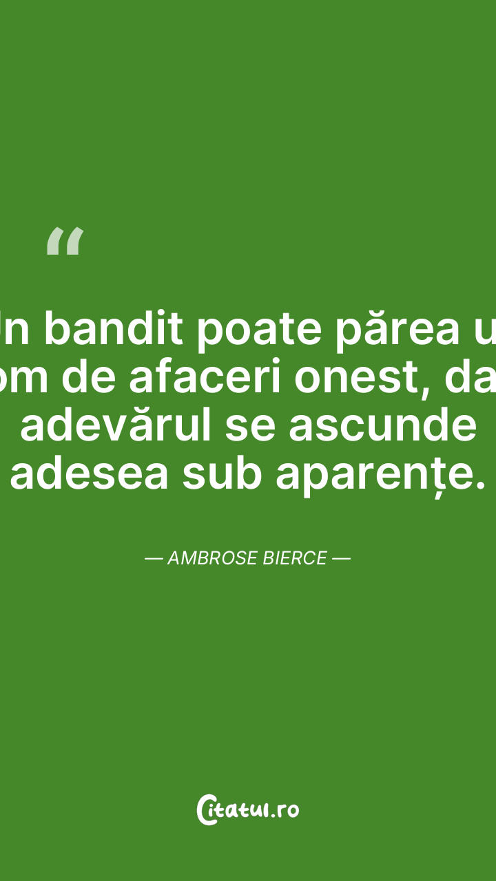 Un bandit poate părea un om de afaceri onest, dar adevărul se ascunde adesea sub aparențe. Ambrose Bierce