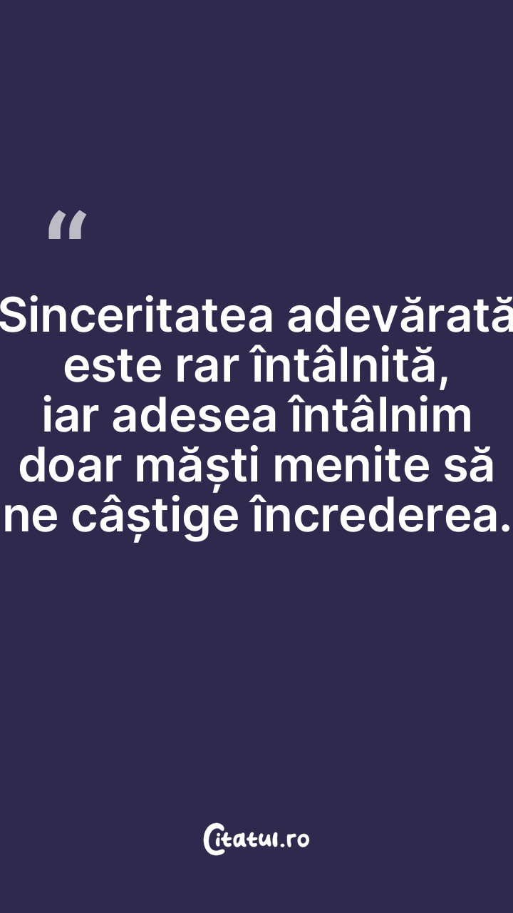 Sinceritatea adevărată este rar întâlnită, iar ade...