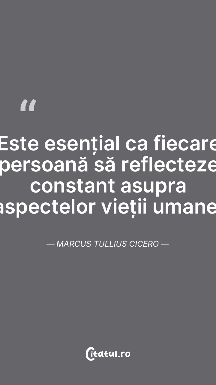 Este esențial ca fiecare persoană să reflecteze constant asupra aspectelor vieții umane. Marcus Tullius Cicero