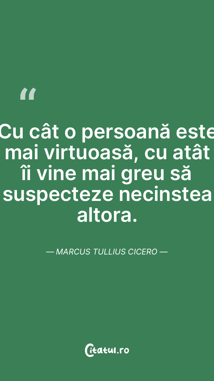 Cu cât o persoană este mai virtuoasă, cu atât îi vine mai greu să suspecteze necinstea altora. Marcus Tullius Cicero
