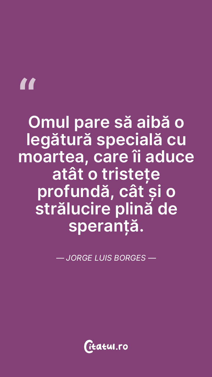 Omul pare să aibă o legătură specială cu moartea, care îi aduce atât o tristețe profundă, cât și o strălucire plină de speranță. Jorge Luis Borges