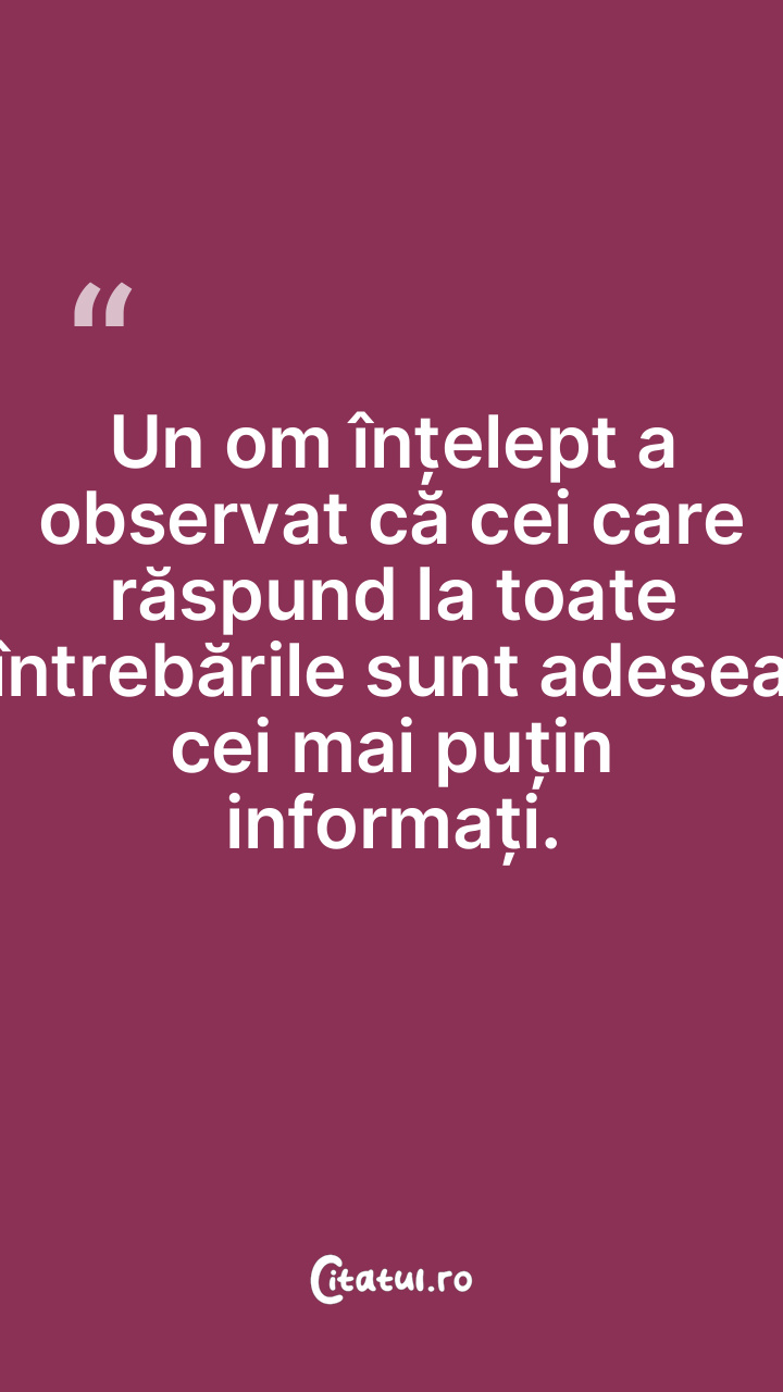 Un om înțelept a observat că cei care răspund la toate întrebările sunt adesea cei mai puțin informați.