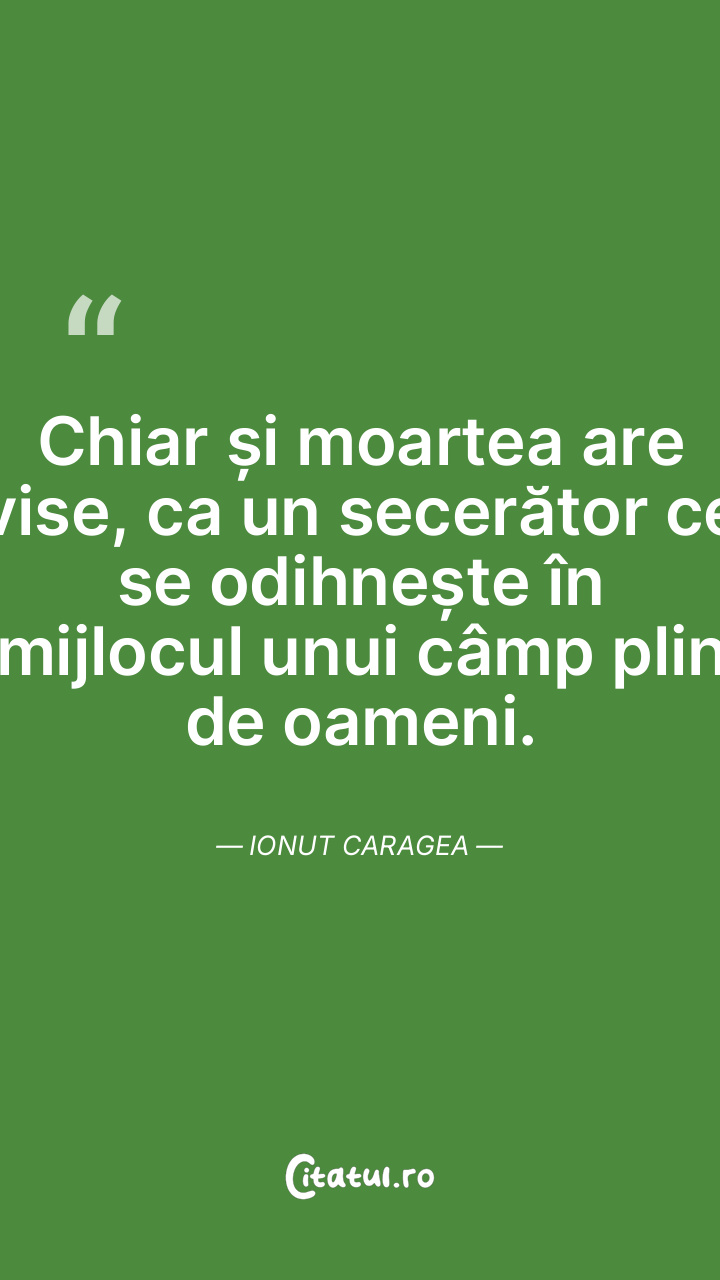 Chiar și moartea are vise, ca un secerător ce se odihnește în mijlocul unui câmp plin de oameni. Ionut Caragea