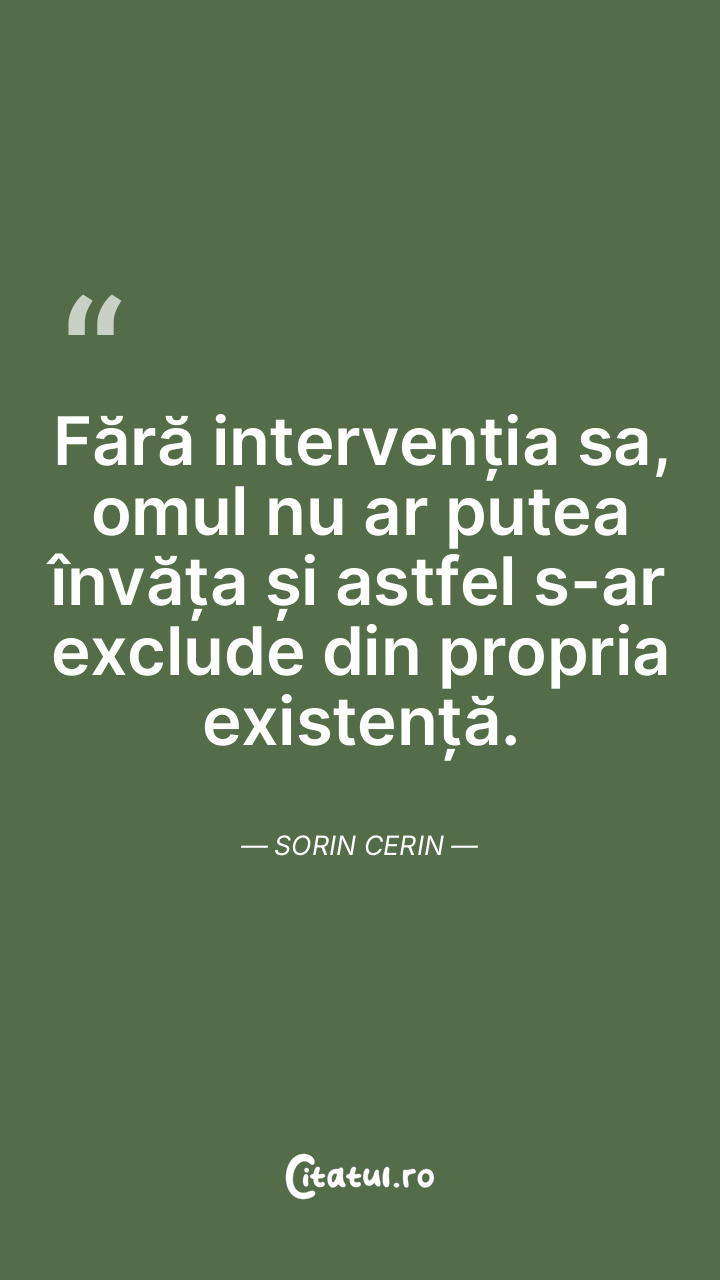 Fără intervenția sa, omul nu ar putea învăța și astfel s-ar exclude din propria existență. Sorin Cerin