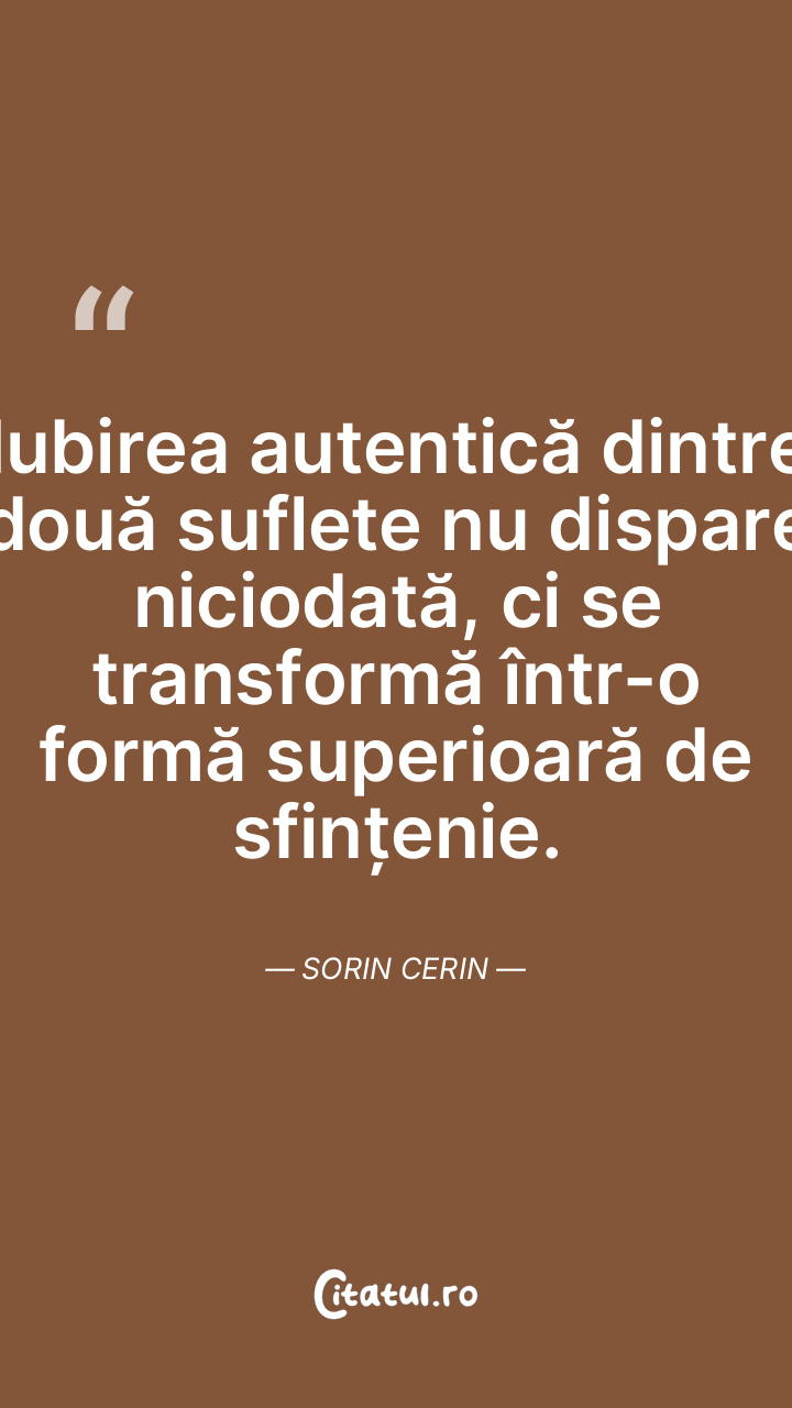 Iubirea autentică dintre două suflete nu dispare niciodată, ci se transformă într-o formă superioară de sfințenie. Sorin Cerin
