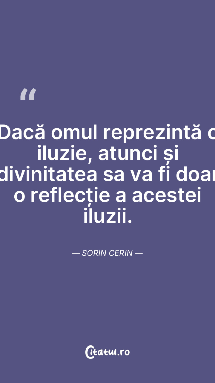 Dacă omul reprezintă o iluzie, atunci și divinitatea sa va fi doar o reflecție a acestei iluzii. Sorin Cerin